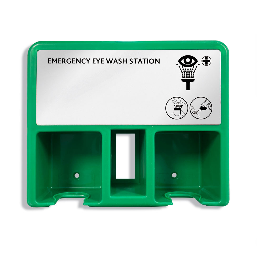 Made with 100% recycled and recyclable plastic the Reliance Eye Wash Station is manufactured in high visibility green from recycled plastic materials incorporating two 500ml bottles of sterile solution, two eye pads, and an extra-large shatterproof mirror. With isolated workers in mind, easy to follow instructions on the front panel make self-administration by an injured person practical and straightforward. Saline and eye pads can be replaced at any time.